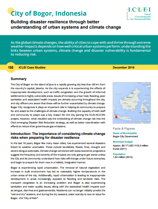Building disaster resilience through better understanding of urban systems and climate change in Bogor, Indonesia