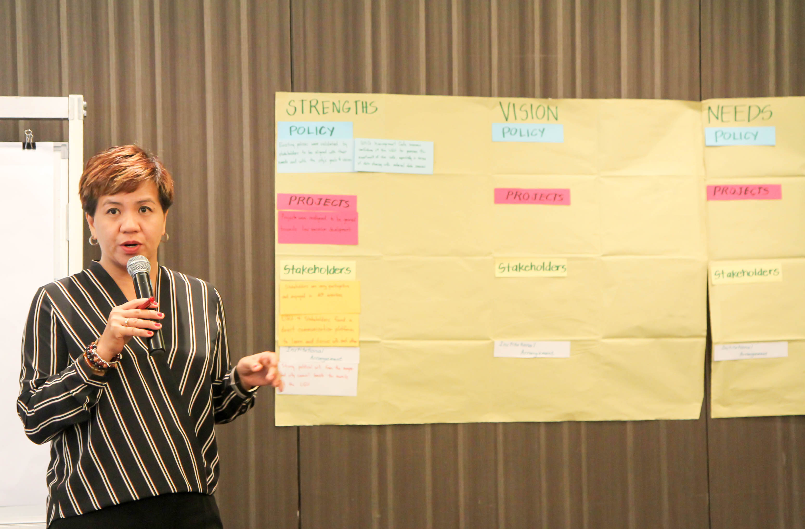 Ms. Raquel Naciongayo, head of City Environment and Natural Resources (CENRO), shared that Pasig is envisioning to tap homeowners associations, tricycle drivers and operators associations (TODA), and the barangay as primary stakeholders of their strategies and programs to promote low emission development. To ensure that the effort also touched integral sectoral groups, the city planned to work closely with the youth and business sector as well.