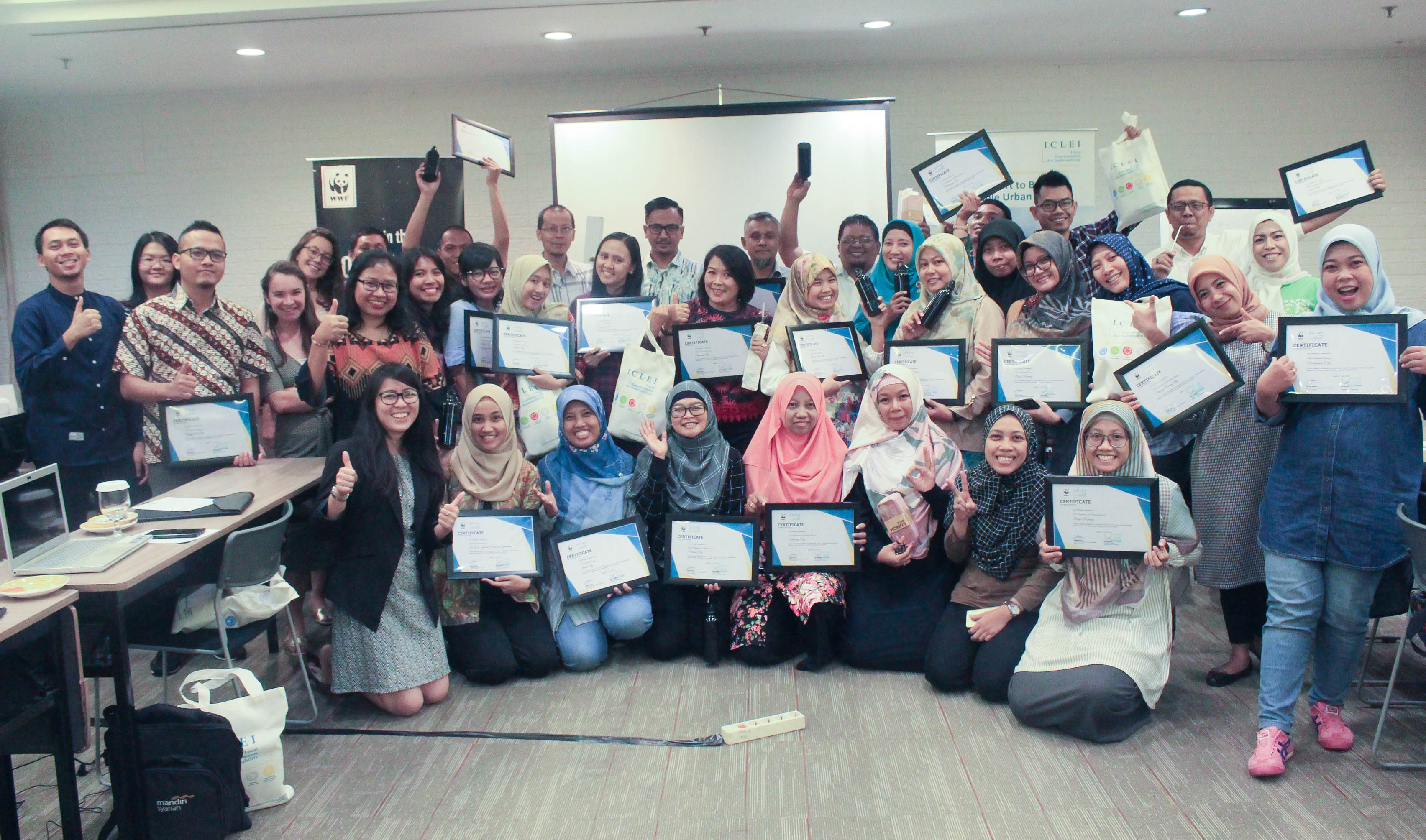 Participants of this workshop were technical staff from cities’ Environment Agency and Local Development Planning Agency including Urban-LEDS cities (Balikpapan, Bogor, Bontang, Tarakan, Tangerang Selatan, and Kabupaten Bogor); Ambitious City Promises cities (DKI Jakarta province, Bekasi and Tangerang), as well as ICLEI’s member and network cities.