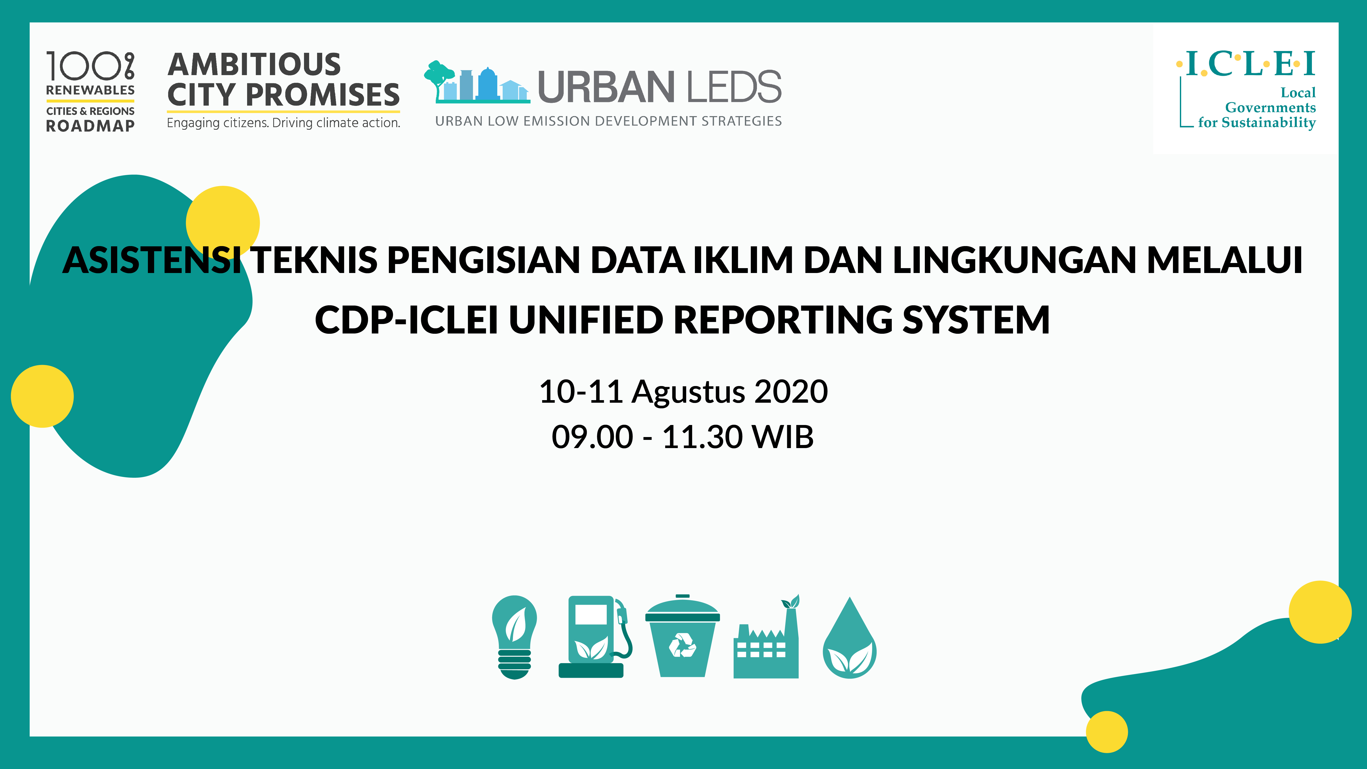 Jakarta, Indonesia – ICLEI – Local Governments for Sustainability Indonesia (ICLEI SEAS) held a virtual technical assistance on climate and environmental data reporting through the CDP-ICLEI Unified Reporting System 2020 on 10-11 August 2020 whichwas carried out as one of ICLEI Indonesia’s efforts with Indonesian local government in developing low-emission and climate-adaptive cities.