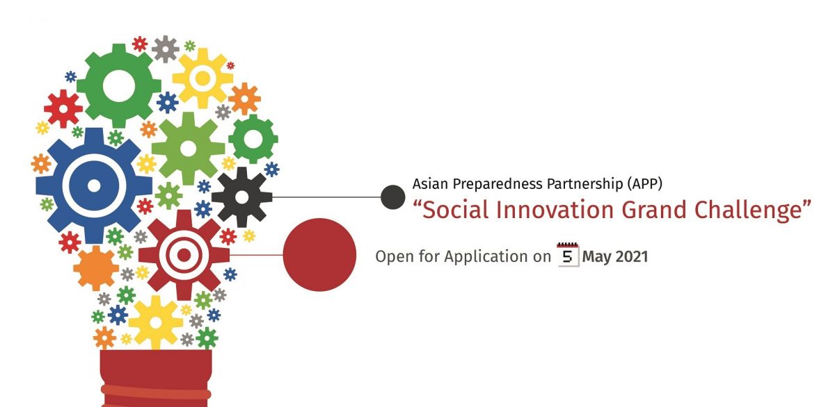 The Asian Preparedness Partnership (APP): “Social Innovation Grand Challenge” seeks to identify, curate, nurture, and promote innovations derived from ‘local actors’ (i.e. governments, academia, private entrepreneurs, and civil society) for addressing pertinent DRM related challenges. Applications for Expression of Interest (EOI) for the APP: ‘Social Innovation Grand Challenge’ will open on 5 May 2021 at 13:00 Bangkok time (ICT).