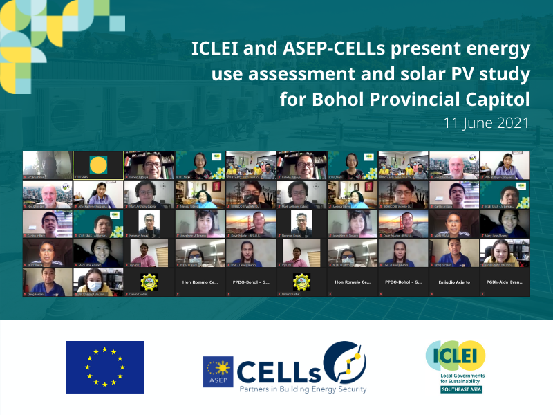 The ICLEI – Local Governments for Sustainability Southeast Asia Secretariat (ICLEI SEAS) last 11 June 2021 presented the results of the energy use assessment of the Bohol provincial capitol, as well as the technical and economic potential of installing solar photovoltaic systems on the capitol’s rooftop and parking lot. The studies are supported by the European Union-funded Access to Sustainable Energy Programme – Clean Energy Living Laboratories (ASEP-CELLs) as part of ICLEI-SEAS technical assistance to partner local government Bohol Province.