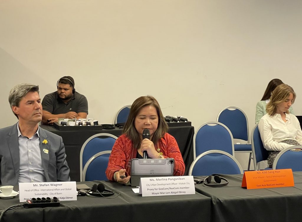 Ms. Merlina Panganiban (center), City Urban Development Officer of Makati City, Philippines, in the ICLEI GexCom and RexCom meeting as the representative of Makati City Mayor Mar-Len Abigail “Abby” Binay during the during the ICLEI World Congress 2024, June 19-21 in São Paulo City, Brazil. Mayor Binay is the Southeast Asia RexCom regional representative and Innovative Finance Portfolio holder of the ICLEI GexCom 2024-2027.
