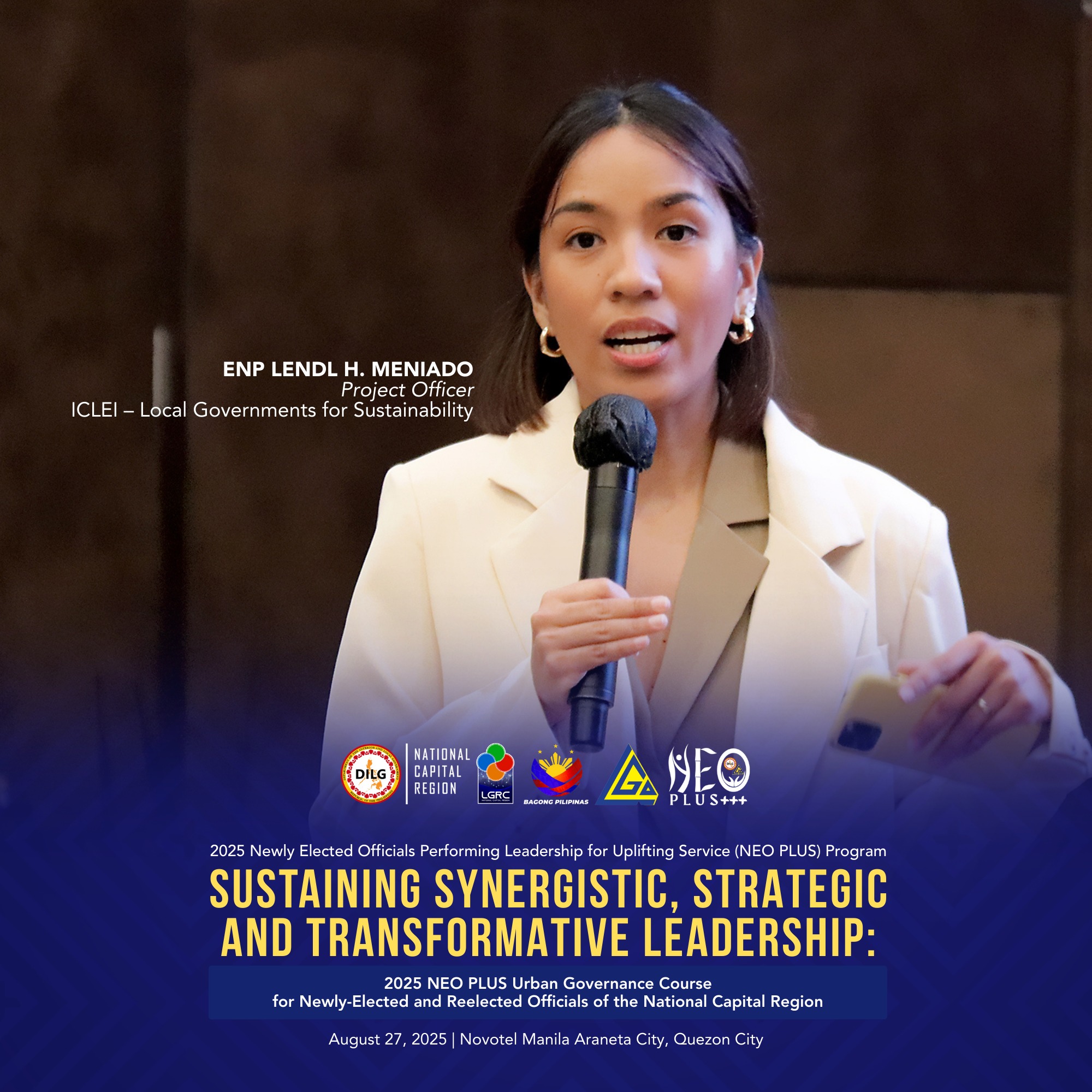 ICLEI Southeast Asia (SEA) Project Officer Lendl Meniado, EnP, served as the resource speaker on “Inclusive Governance in Action: Strengthening Social Protection through Partnerships” in the 2025 Newly Elected Officials Performing Leadership for Uplifting Service (NEO PLUS) Program’s Urban Governance Course, organized by the Philippine Department of the Interior and Local Government (DILG) for National Capital Region (NCR) officials.