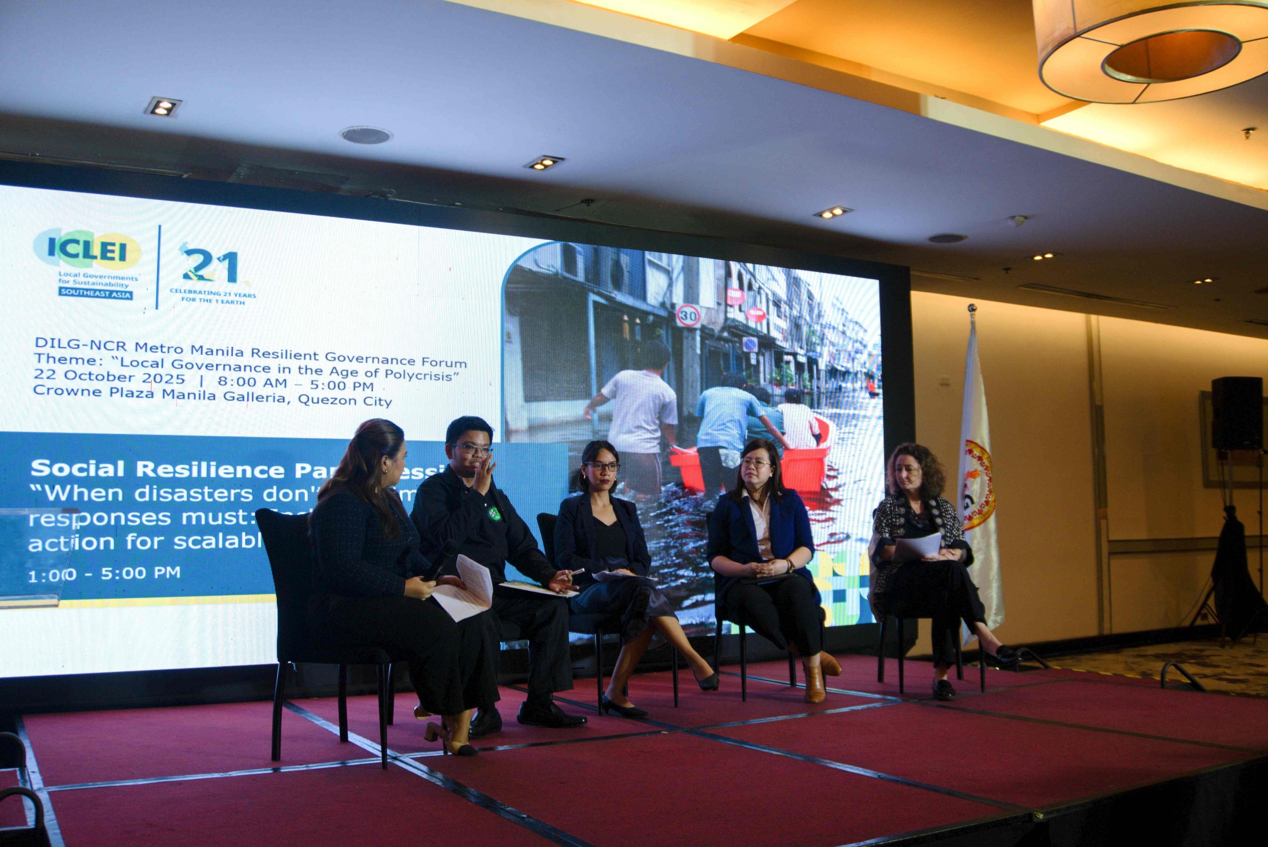 At the 2025 Metro Manila Resilient Governance Forum (MMRGF), ICLEI Southeast Asia (SEA) convened a panel discussion on social resilience that examined how local governments can strengthen social safety nets as a core element of resilience building. Titled “When disasters don’t discriminate, responses must: Inclusive local action for scalable national resilience,” the session brought together experts to explore what social resilience means in practice and how local governments can advance inclusive approaches to resilience.