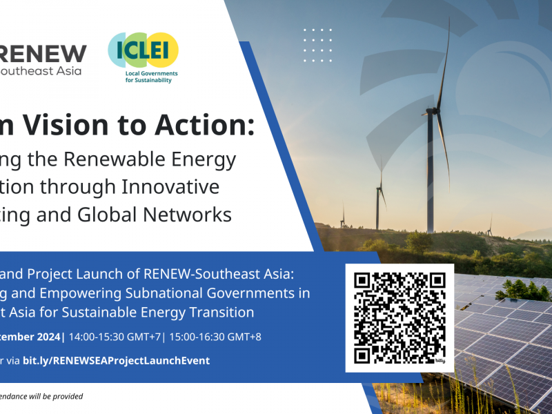 Posted by Chris Hidalgo on September 16, 2024Banking on the key role of sub-national governments for climate action, particularly on our journey towards net-zero emissions, ICLEI – Local Governments for Sustainability Southeast Asia (ICLEI SEA) will be holding the From Vision to Action: Enabling the Renewable Energy Transition through Innovative Financing and Global Networks Webinar and Project Launch of RENEW-Southeast Asia: Mobilizing and Empowering […]