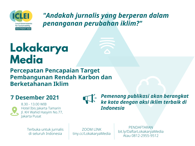 Posted by Chris Hidalgo on December 1, 2021Are you a journalist who supports climate action and low-carbon development? The ICLEI – Local Governments for Sustainability Indonesia Office, as part of a series of One Planet City Challenge (OPCC) activities, will soon hold a media workshop with the theme “Accelerating the Achievement of Low Carbon and Climate Resilience Development Targets.” The workshop will […]